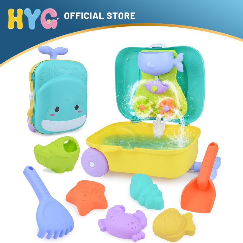 HYG trolley box toy 8PCS Sand Molds Toys 2 in 1 Children's Summer Beach Toy Set Whale Luggage Trolley Box Summer Sand Shovel Outdoor Water Toy