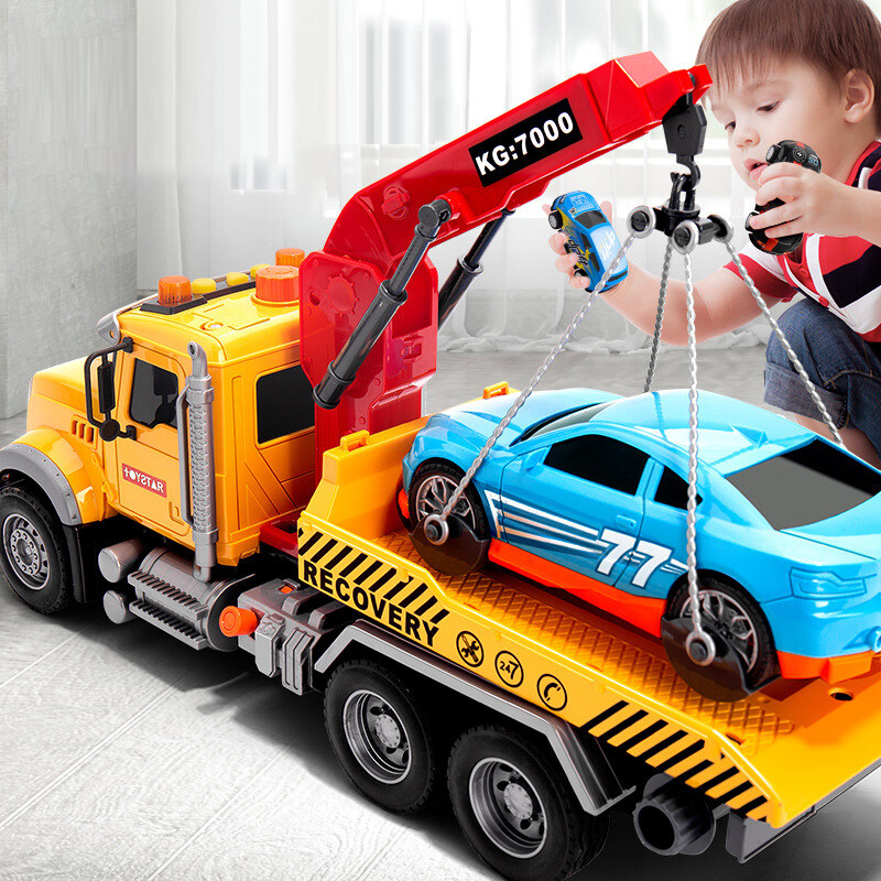 Boy Trailer Toy Crane Children's Car Large Crane Flat Road Wreckage Engineering Transport Rescue Vehicle