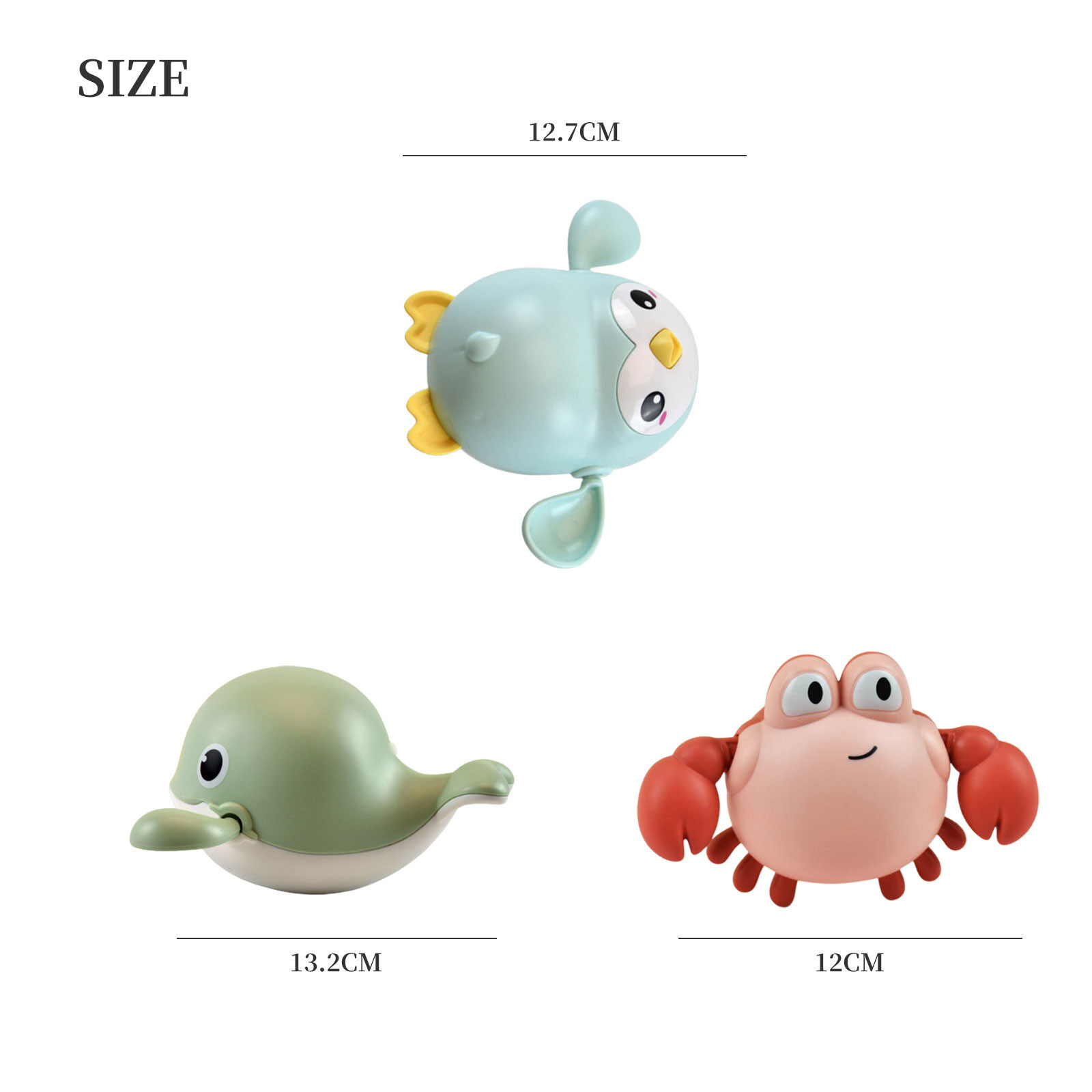 Let Baby Enjoy Bath -- Only happy without crying! The swimming team could be a good way to divert your baby's attention and allow them to enjoy water. Whether bathing or swimming, let your child splash with the cute team.