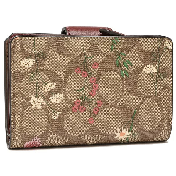 Coach Wallet In Gift Box Medium Wallet Medium Corner Zip Wallet In Signature Canvas With Wildflower Print Khaki # C8730