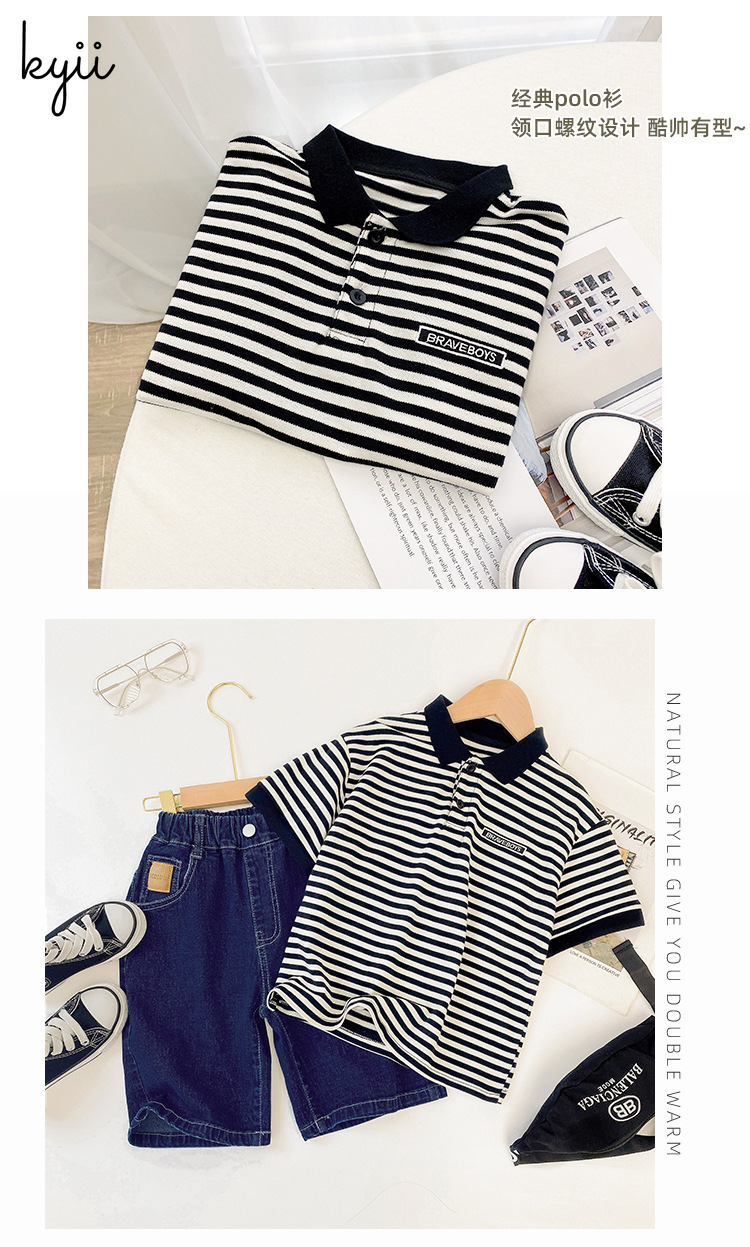 KYII stripe short sleeve Casual boys cotton summer loose shirt Korean Shirt kyb041
