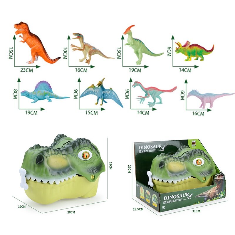 HYG Dinosaur head cover toy 16PCS Large Dinosaur Head Storage Toy Jurassic World Tyrannosaurus Rex Model Set Scene Can be a storage box kid‘s toy boy and girl gift