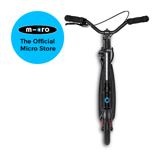 The Micro Metropolitan Deluxe Black has an ergonomic design making it the perfect all rounder. With its wide, curved T-bar and large wheels it offers an unmistakeable cruiser feeling. In addition, the front suspension provides more driving comfort. The integrated tube light and the reflectors on the brake ensure a safe ride in the dark. The front handbrake is handy for easy urban use. A cool and practical companion for everyday life! For good visibility, it has a micro Tubelight on the handle bar.