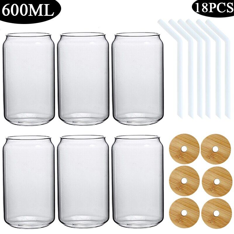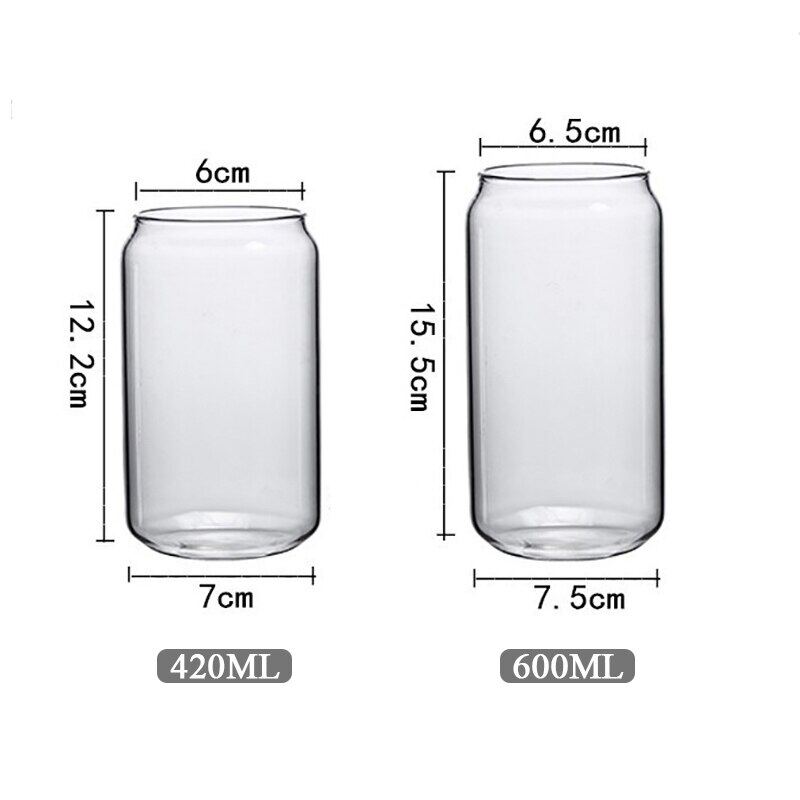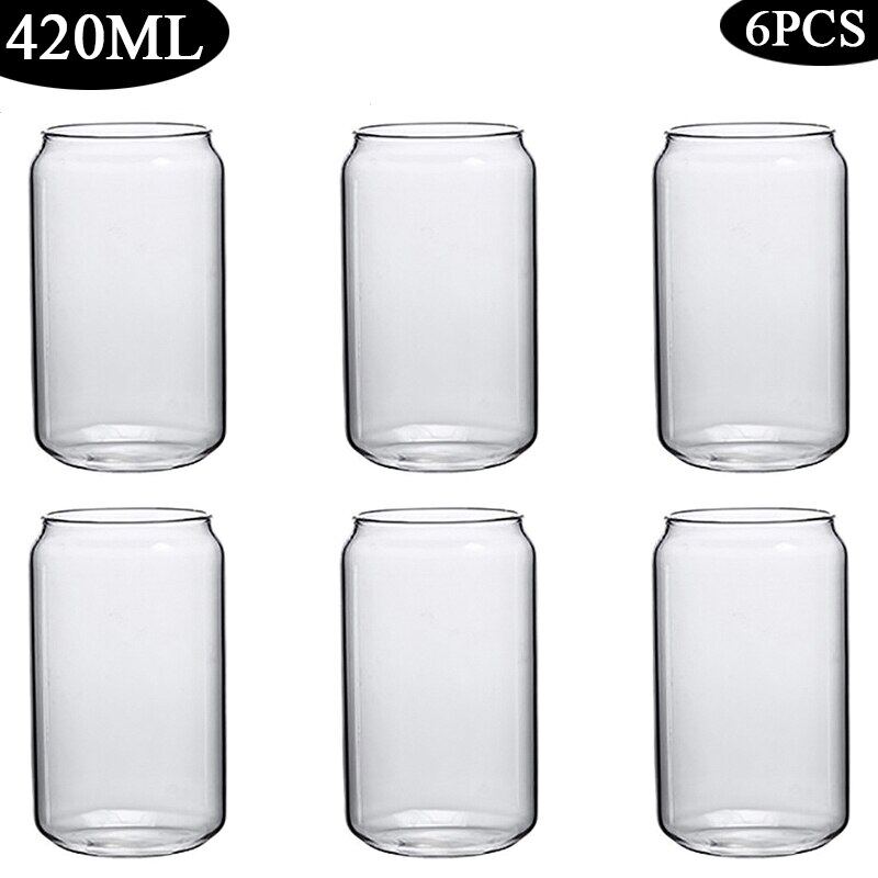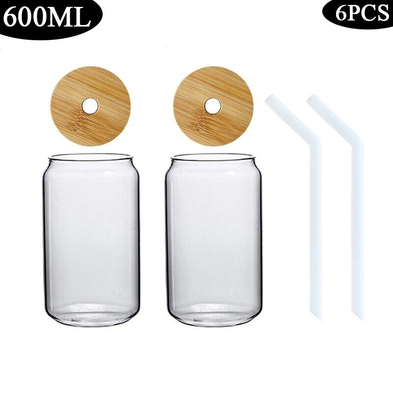 420/600ML 2-6PCS Transparent Glass Cup With Lid Straw Bubble Tea Cup Juice Coffee Beer Can Milk Mocha Breakfast Mug Drinkware