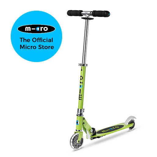 The Micro Sprite can fold up and is easy to carry. This versatile aluminium scooter has been a popular companion for years amongst kids going to school and also commuters. This series now has LED wheels at the front and rear giving this classic Micro Scooter that extra something.
